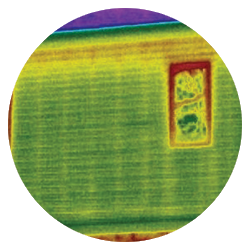 Thermal imaging reveals two energy leaks: yellow lines where energy escapes through studs, and red at the top of the wall where cavity insulation has settled over time.